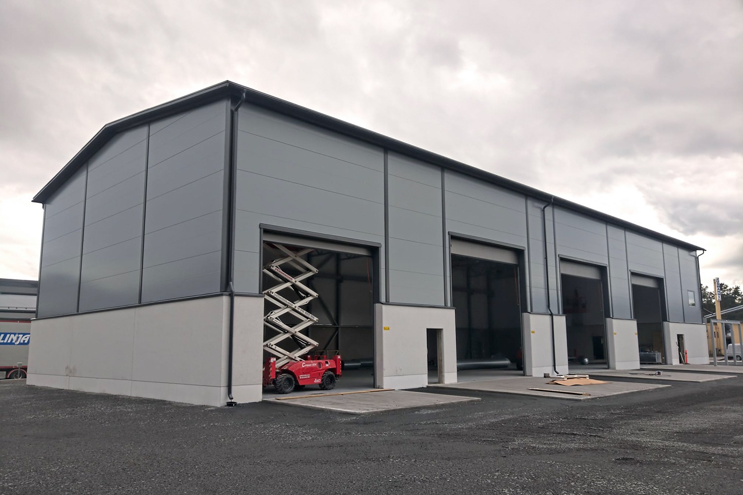 Trutec Oy:n toimittaman tuotantohallin toimitus sisälsi: