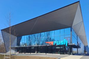 Näyttävällä julkisivulla varustettu hallipaketti Rushille